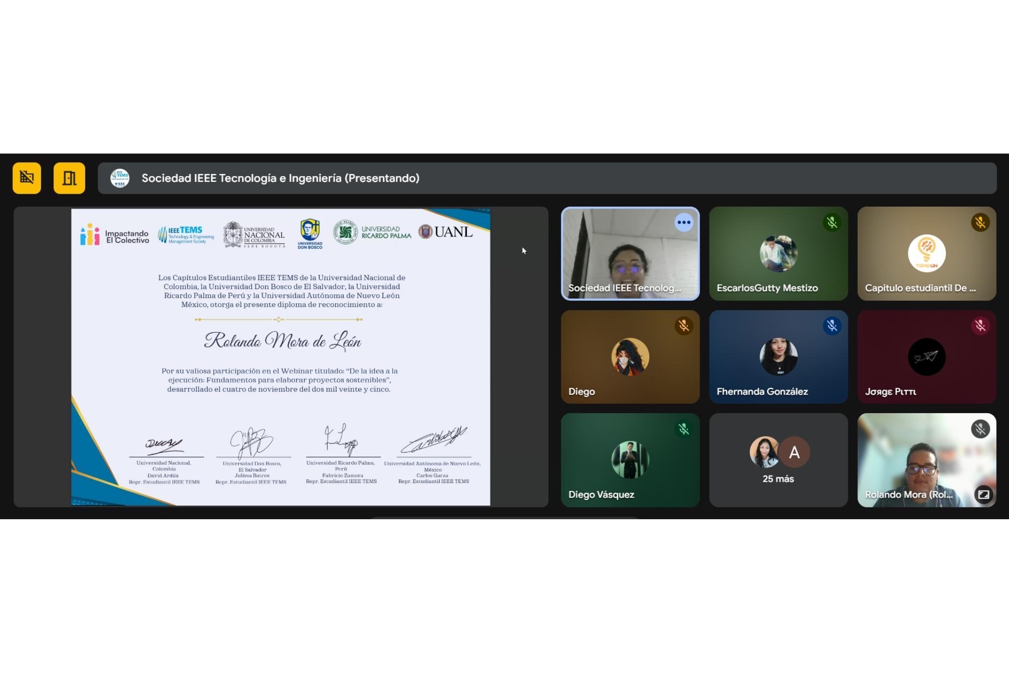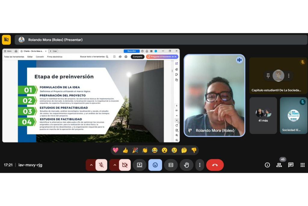 La actividad forma parte de la segunda edición de Impactando El Colectivo, un ciclo de talleres sobre gestión de proyectos y bienestar organizado por los capítulos estudiantiles de la Sociedad de Gestión de Tecnología e Ingeniería (TEMS) del Instituto de Ingenieros Eléctricos y Electrónicos (IEEE) en la Universidad Nacional de Colombia, la Universidad Don Bosco de El Salvador, la Universidad Ricardo Palma de Perú y la Universidad Autónoma de Nuevo León México.