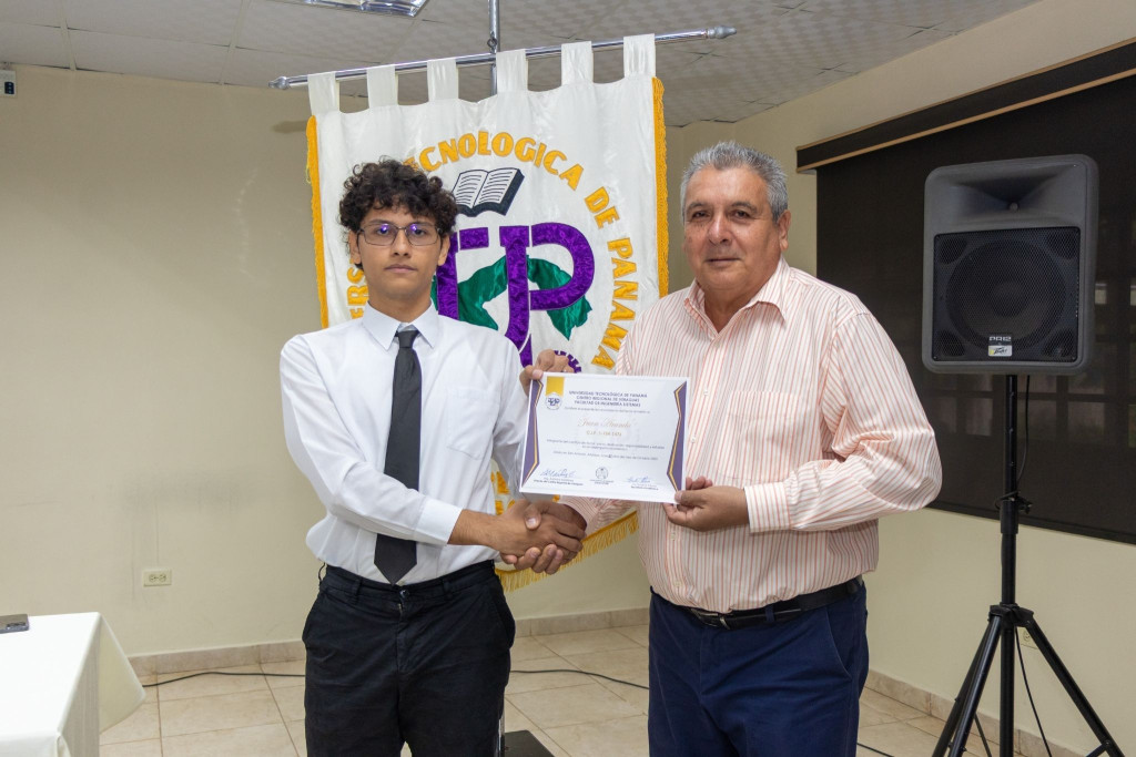 El acto contó con la participación del Ing. Adriano Martínez, Director del Centro Regional de Veraguas; el Dr. Cristian Pinzón, Subdirector de Investigación, Posgrado y Extensión; la Lcda. Emelina Atencio, Secretaria Académica; y la Ing. Nieves Bernal, Coordinadora de la Facultad de Ingeniería Eléctrica, además de profesores, estudiantes e invitados especiales.